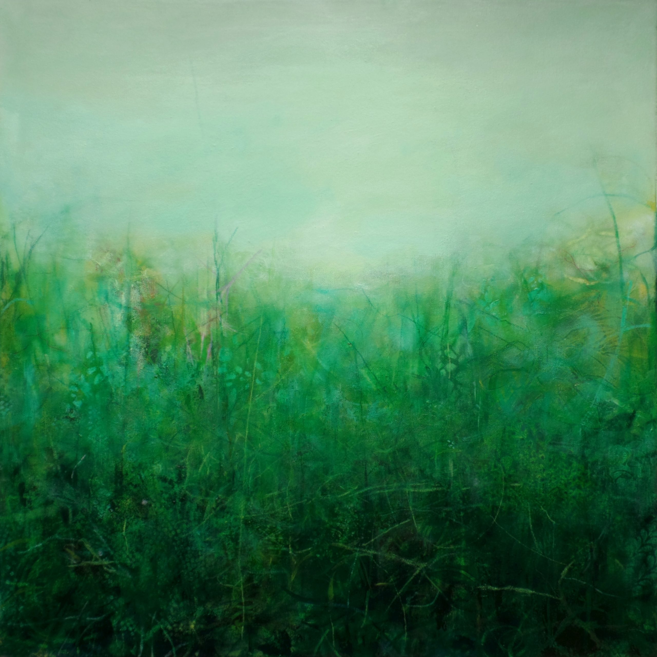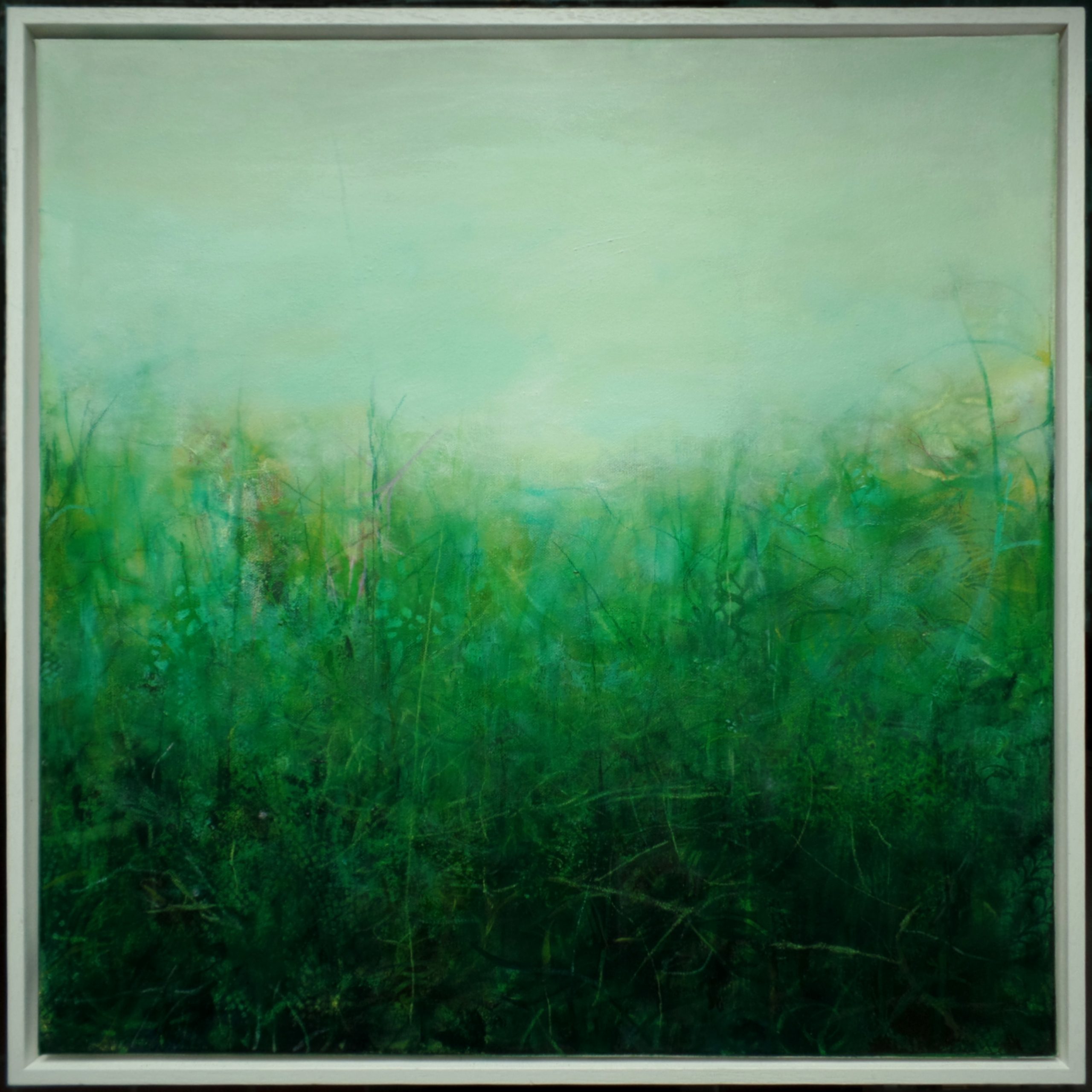Oil on canvas. 60cm x 60cm unframed/64cm x 64cm framed in a simple white canvas frame. Depth 3cm.
