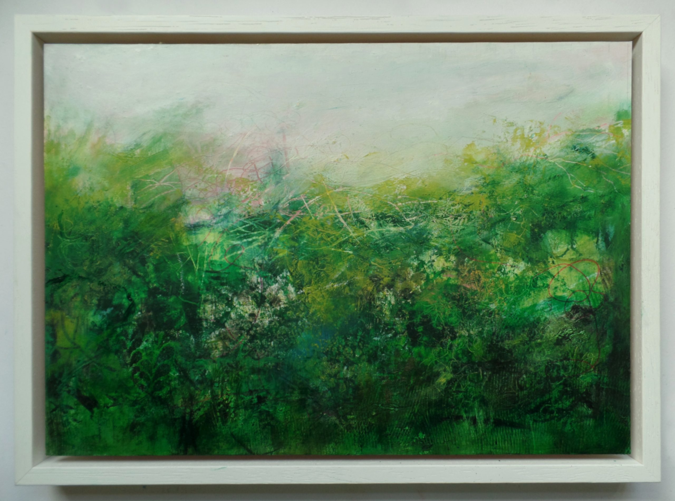 22.5 x 31.5 cm unframed/26.5cm x 35.5cm framed with a simple white wooden canvas frame. Depth of frame 3.5 cm.