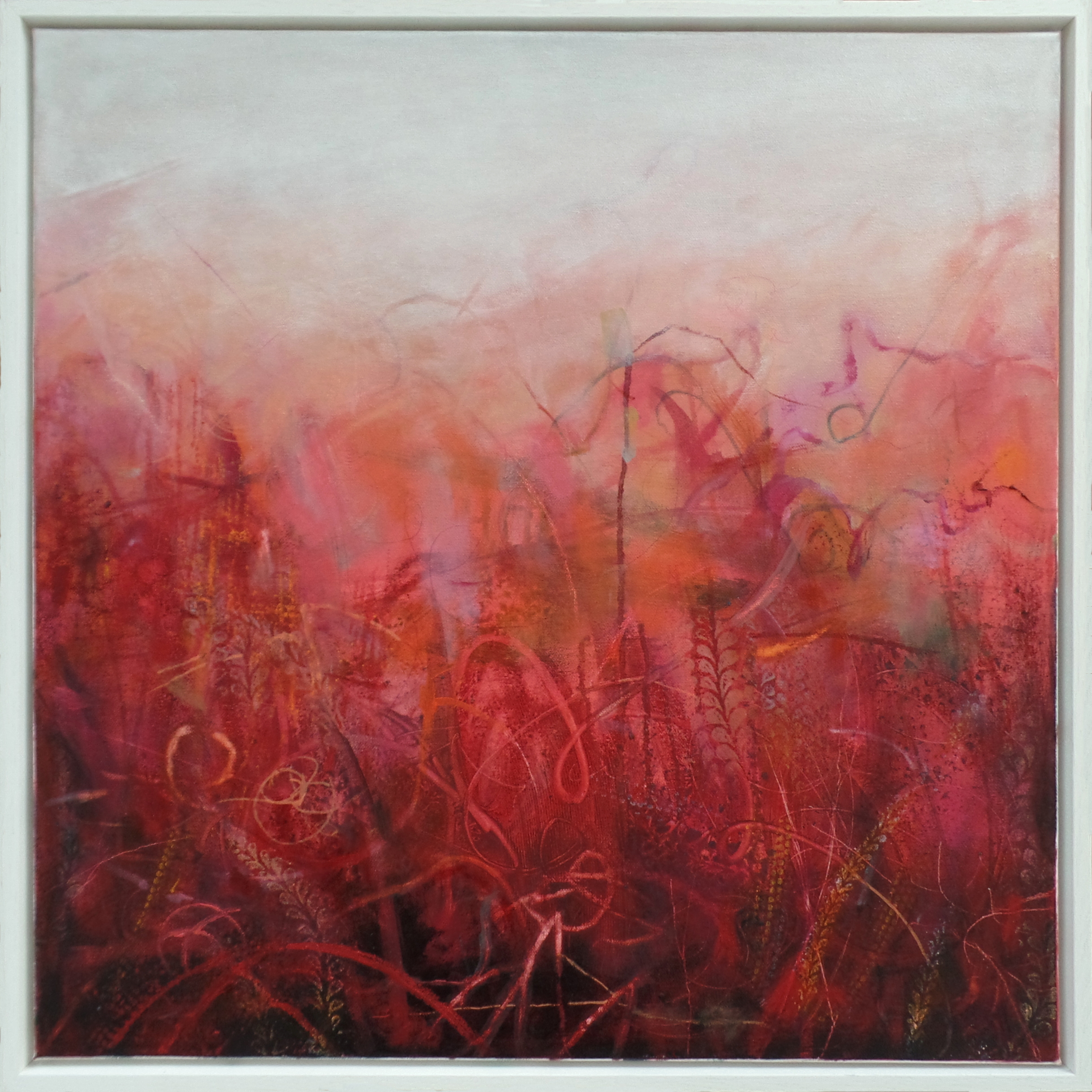 60cm x 60cm unframed/64cm x 64cm framed in a simple white canvas frame. Depth 3cm.
